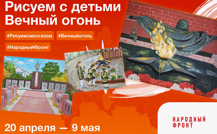 В рамках акции «Вечный огонь в нашем сердце» Народный Фронт совместно с Акционерным обществом «МОСГАЗ» с 20 апреля по 9 мая 2025 года проводят шестой Всероссийский конкурс семейного творчества «Рисуем с детьми Вечный огонь». В 2025 году исполняется 80 лет со Дня Победы над фашистской Германией в Великой Отечественной войне. В честь этого знакового юбилея указом Президента Российской Федерации 2025 год объявлен Годом защитника Отечества.Конкурс станет отличной возможностью почтить память всех защитников, сражавшихся в разные исторические периоды за Родину, и вспомнить их подвиги. Конкурсные работы принимаются в социальной сети «ВКонтакте» и оцениваются по пяти номинациям в различных техниках художественного мастерства (рисунок, коллаж, поделка, компьютерная графика и анимация, а также видеоролики об истории создания работы). Победители конкурса примут участие в торжественной церемонии профилактики Вечного огня на мемориале «Могила Неизвестного Солдата» в Александровском саду, а призеры получат дипломы и ценные призы.