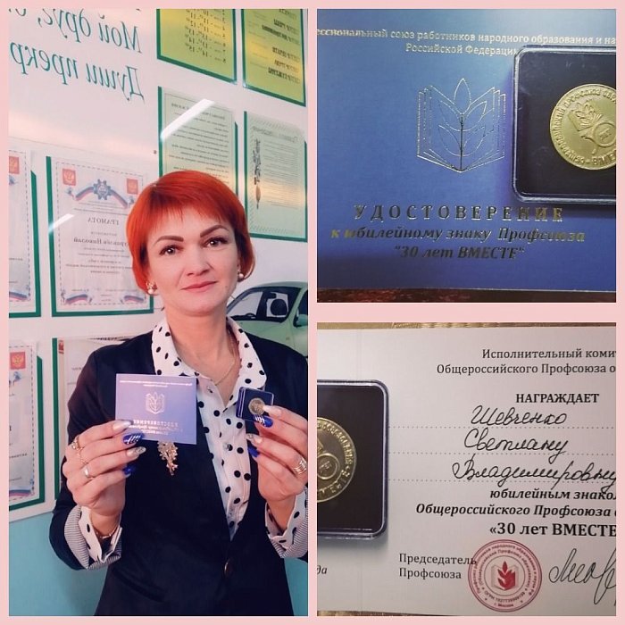 В этом году Общероссийский Профессиональный союз работников народного образования и науки Российской Федерации отметил 30-летие своего создания. По этому случаю учреждена специальная награда - юбилейный знак «30 лет вместе».