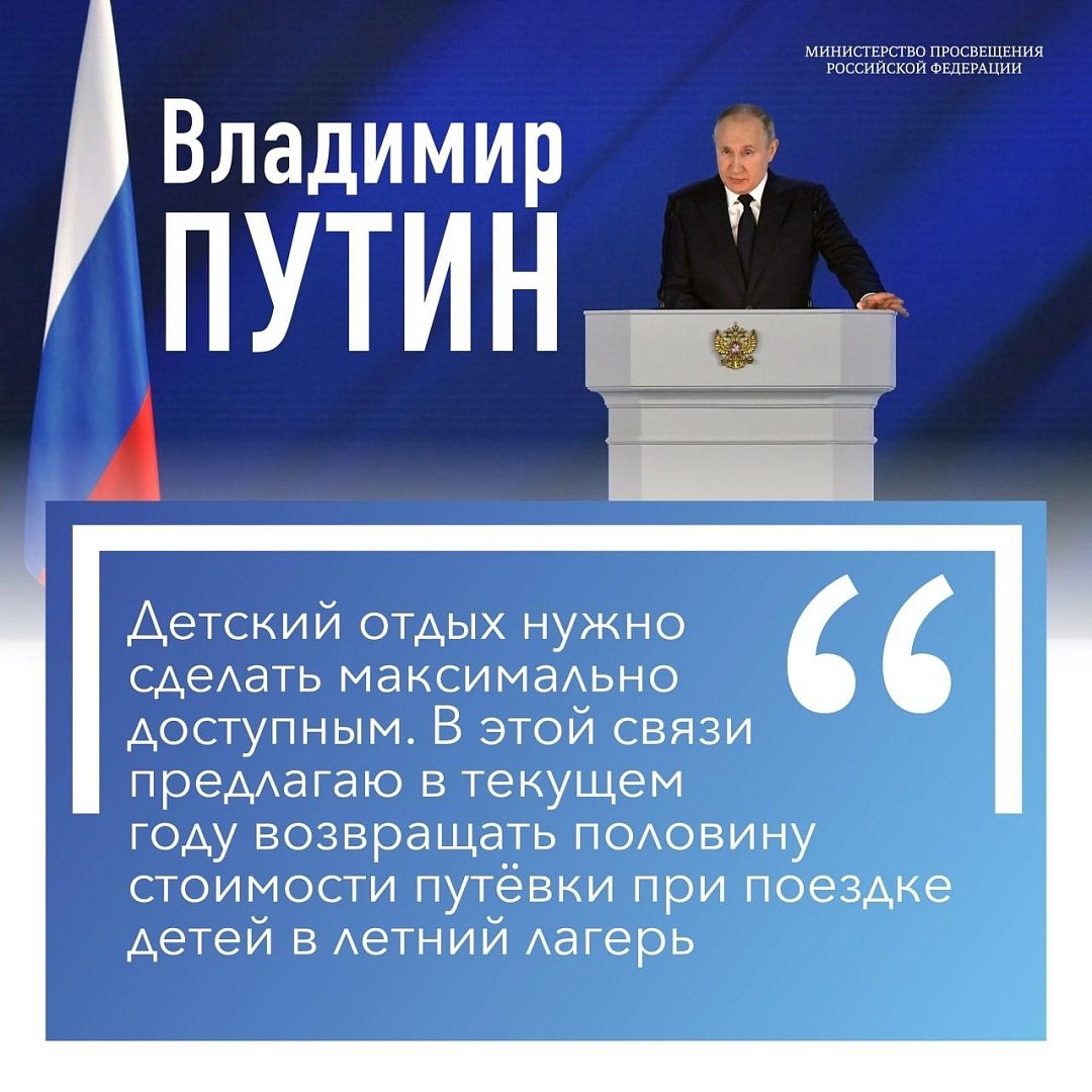 В преддверии летних каникул Президент предложил возвращать половину стоимости путёвки в детские лагеря.