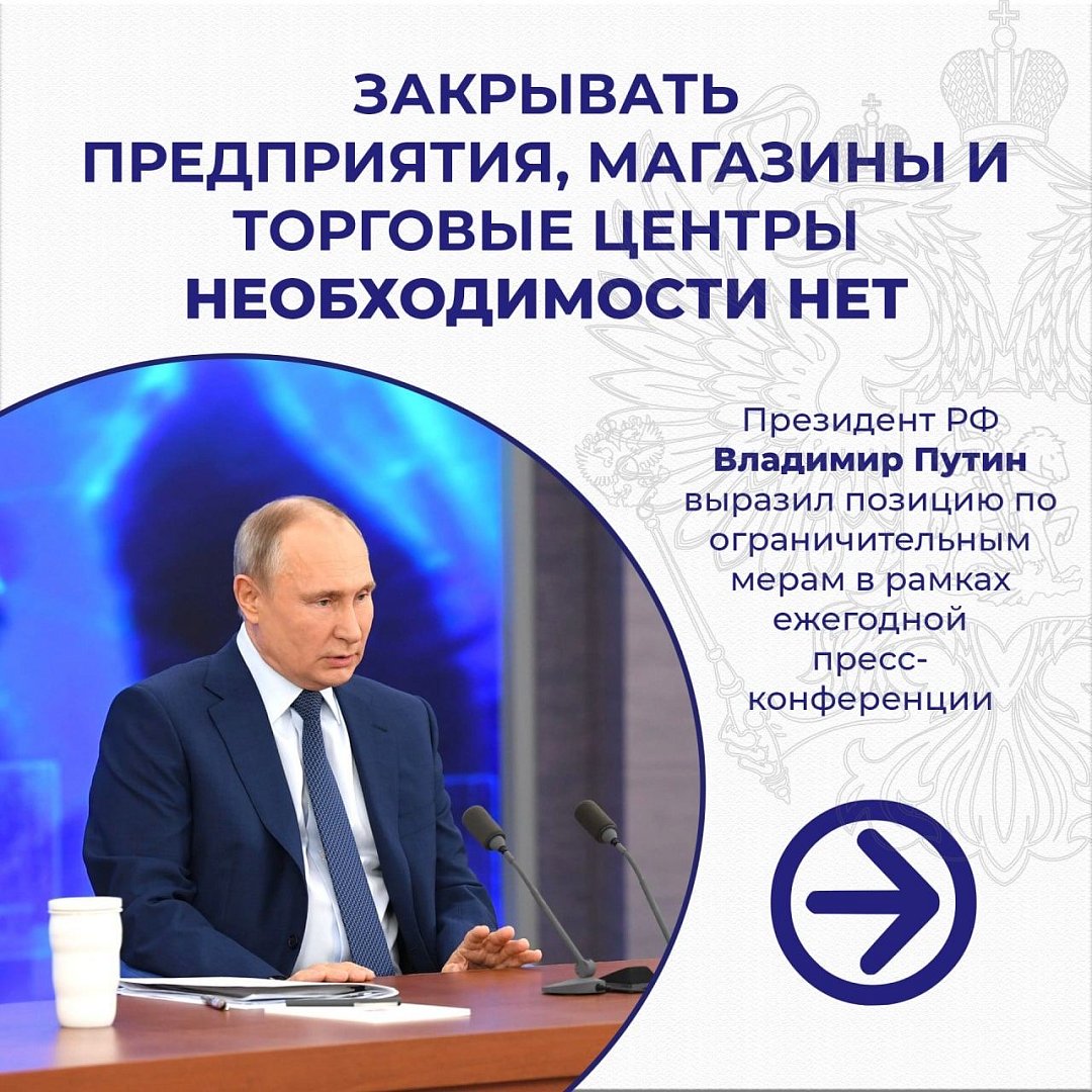 На ежегодной пресс-конференции Владимиру Путину задали вопрос о целесообразности введения полного запрета на посещение общественных мест, иначе говоря, строгой изоляции во время пандемии новой коронавирусной инфекции.