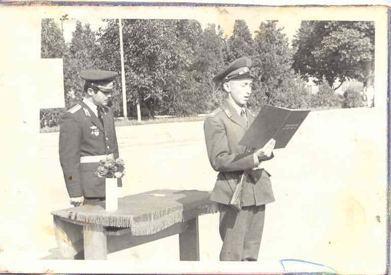На фото автора: воин-интернационалист М. М. Забиров; г. Грозный. Новобранец Забиров принимает присягу.