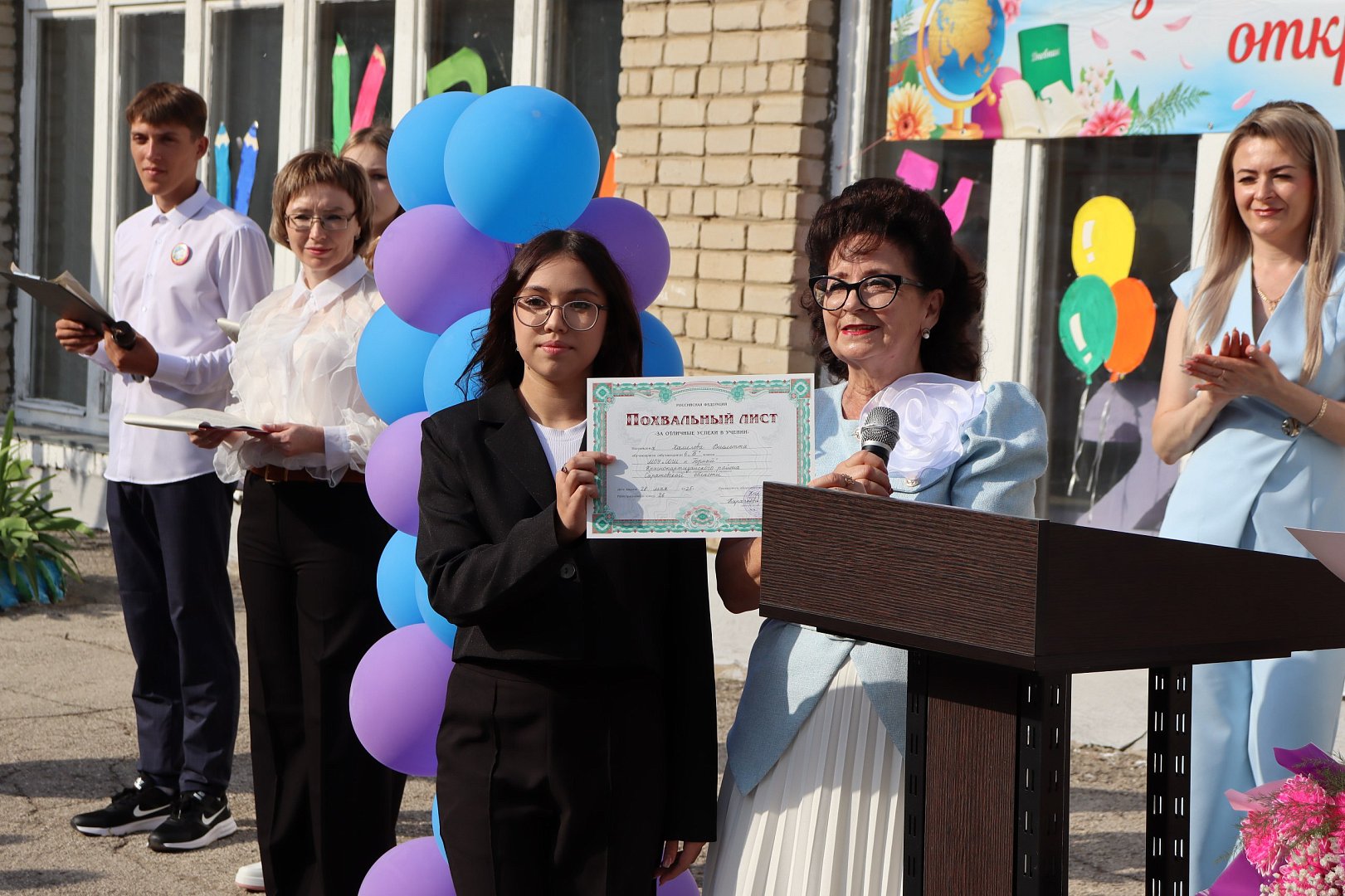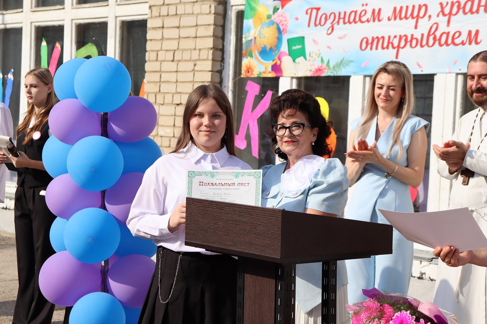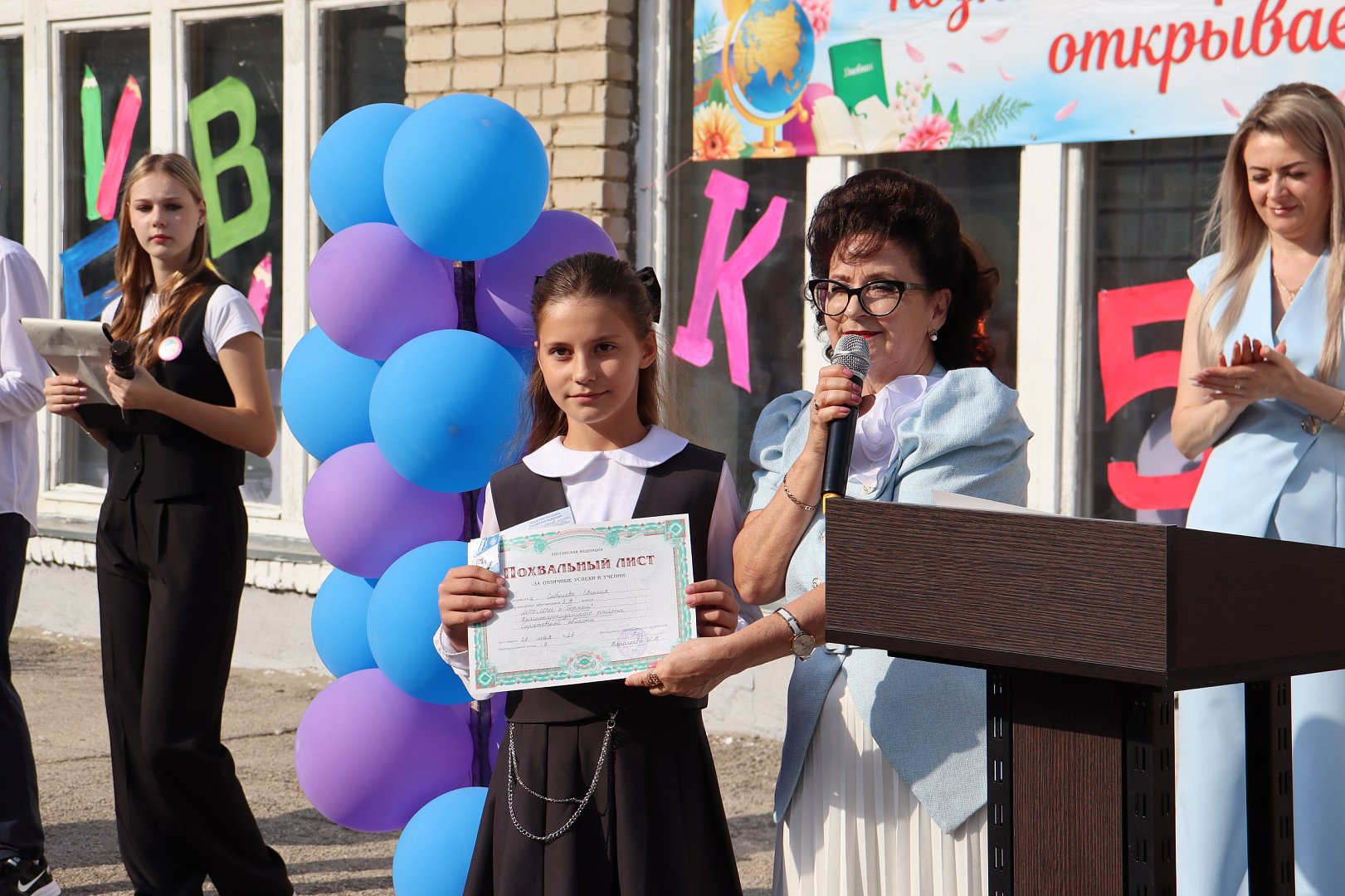 На линейке по традиции чествуется «золотой фонд школы», это те учащиеся, которые окончили предыдущий учебный год только «на отлично». И. А. Карачкова вручила Похвальные листы этим ребятам.
