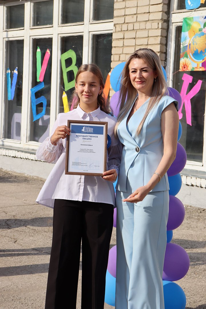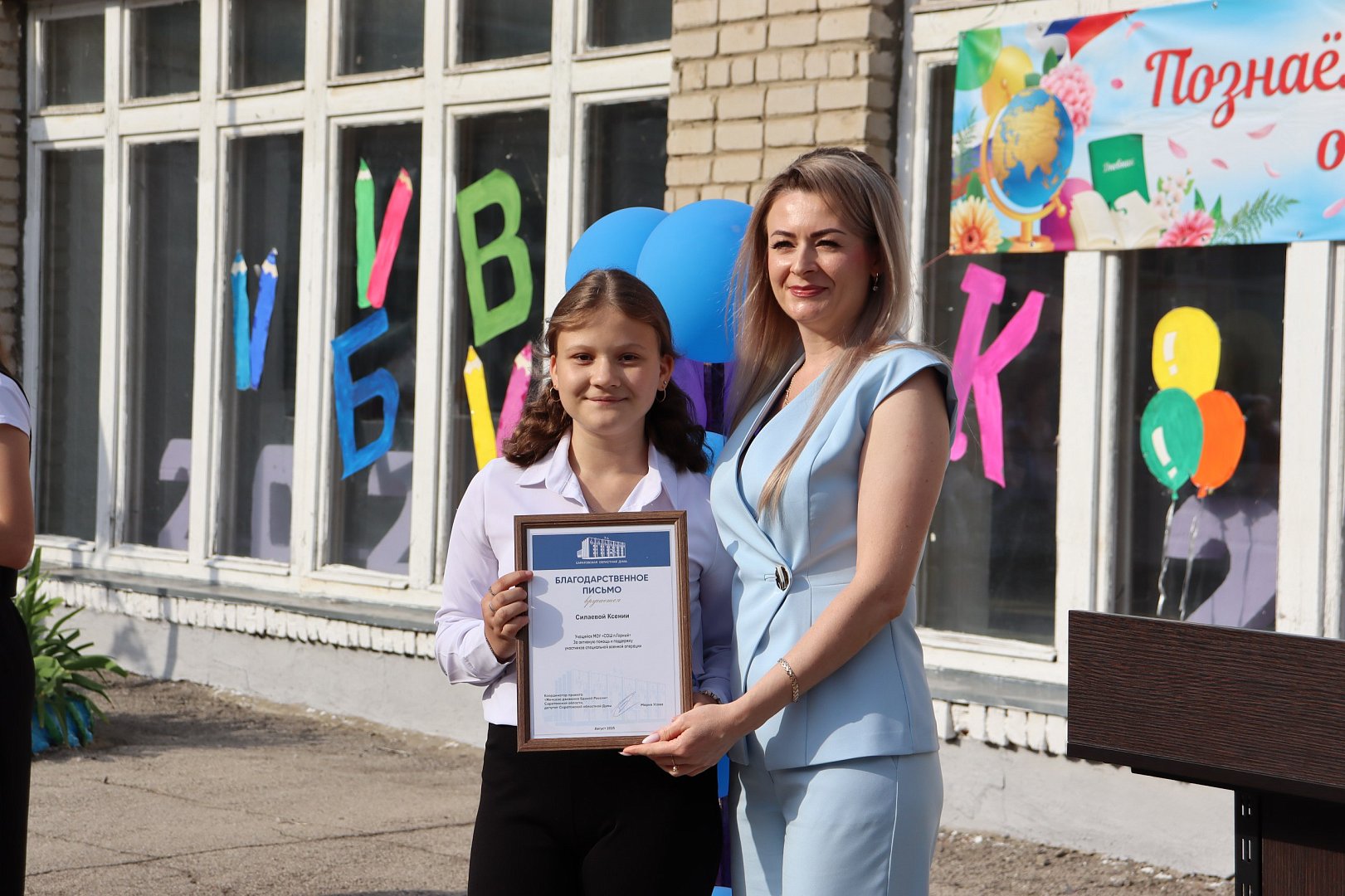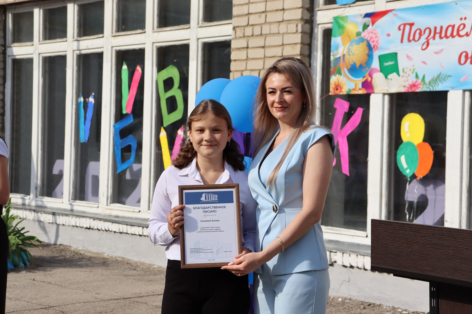 За активную помощь и поддержку участников СВО Н. В. Безгубова вручила Благодарственные письма учащимся.