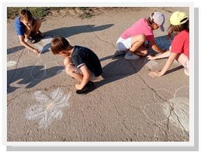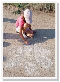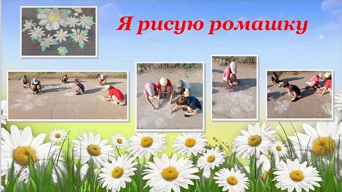 Дети с большим удовольствием рисовали ромашки и солнце. Разноцветные мелки в руках юных творцов становились все меньше и меньше, а асфальт расцветал чудесными и удивительными рисунками.