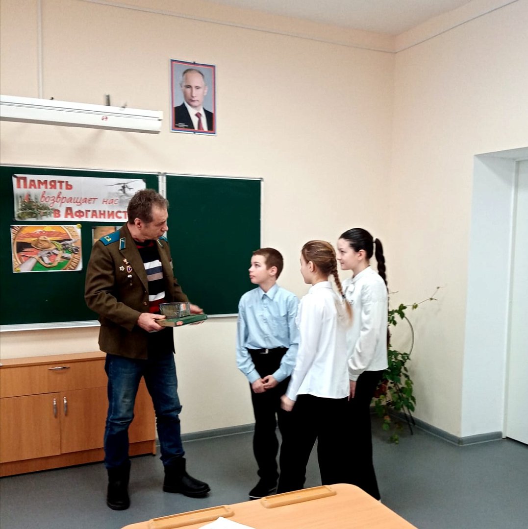 "Многие события уходят от нас в далёкое прошлое, о них мы узнаём из просмотренных фильмов прочитанных книг и редких встреч с ветеранами. Но у нас есть возможность прикоснуться к истории страны, свидетелями которой были наши отцы. 35 лет назад, 15 февраля 1989 года, из Афганистана были выведены советские войска, где наши солдаты на протяжении 10 лет исполняли интернациональный долг.