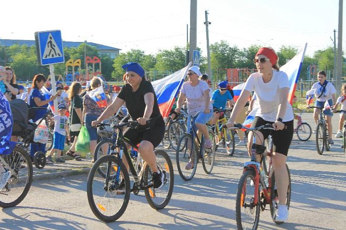 В преддверии этого знаменательного дня 11 июня в поселке Горный прошел традиционный велопробег. Настоящие патриоты своей Родины собрались для того, чтобы проехать по улицам нашего поселка с флагами страны. В велопробеге участвовали жители поселка от мала до велика, целые семьи, что в Год семьи очень примечательно. Перед стартом велопробега всех участников поприветствовала руководитель аппарата администрации Краснопартизанского района Наталья Безгубова.