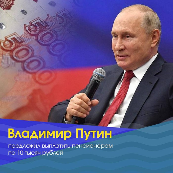 Владимир Путин предложил выплатить пенсионерам по 10 тысяч рублей