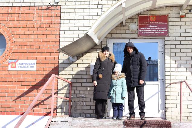 В числе первых голосующих – семья Парамоновых из п.Петровский и молодая семья Захаровых из п.Горный, которые пришли с дочкой-первоклассницей Миленой.