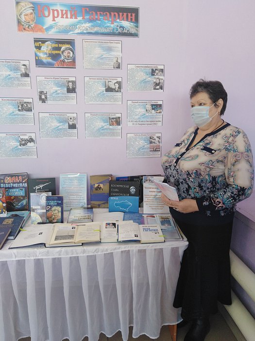 Материалы выставки познакомили посетителей с вехами жизни первого космонавта планеты Земля (этот информационный блок был подготовлен сотрудниками центральной и детской библиотек). Детская и центральная библиотеки п. Горный представили подборку книг по космической тематике. Это и художественная, и научно-популярная литература, рассчитанная на различные читательские предпочтения. Особое место в экспозиции занимают книги Владислава Каца «Именно в Саратове» и Валентины Ивановны Гагариной «Каждый год 12 апреля».