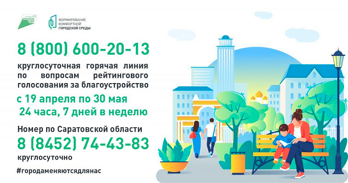 Задать вопрос по конкретной территории в своем городе, вынесенной на голосование, можно по телефону горячей линии Саратовской области - 8 (8452) 74-43-83.