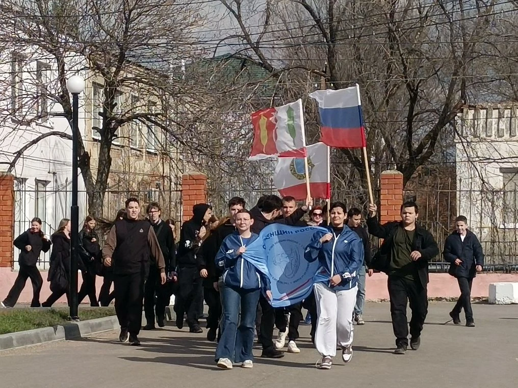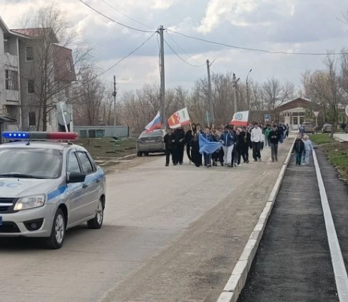 Студентки Краснопартизанского политехнического лицея провели коллективную разминку, после чего колонна с участниками в сопровождение сотрудников дорожно-патрульной службы начала движение.