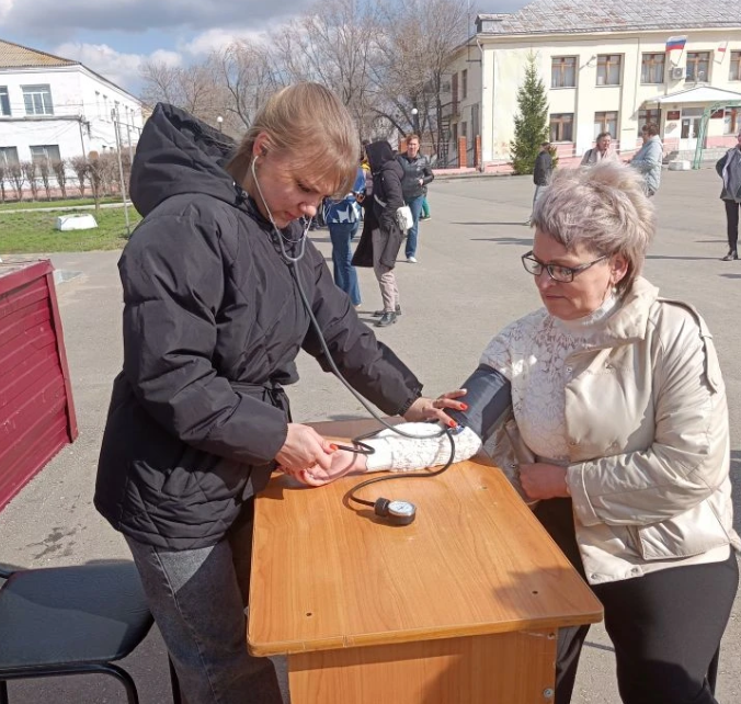 «Серебряный» волонтер Т.Л. Ивашова организовала флэшмоб. Участники выстроились в ряд и взяли в руки разноцветные буквы. Получилась надпись «Всемирный день здоровья». На центральной площади работали медики, перед дистанцией желающие могли измерить давление, рост, вес.