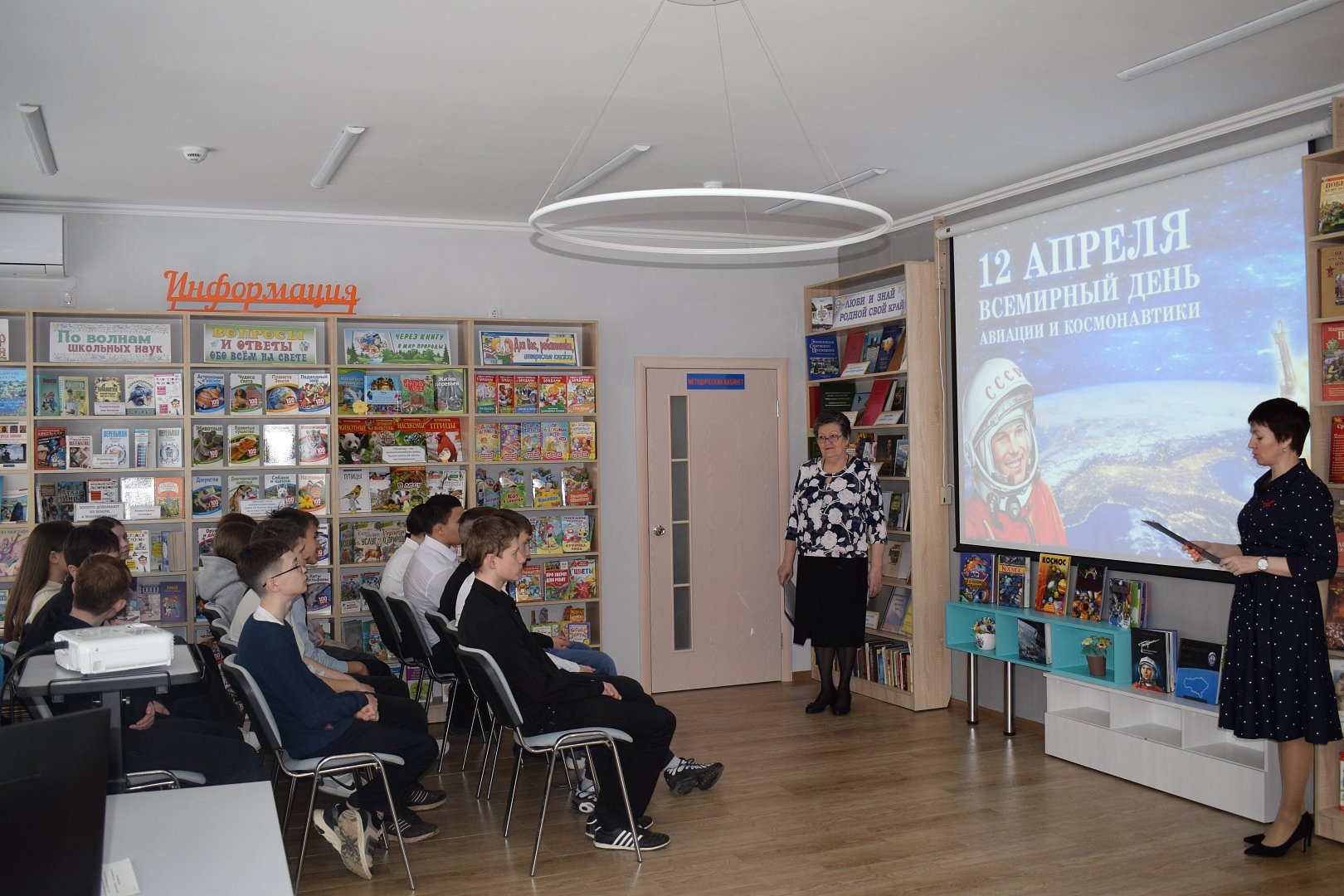 Посредством рассказа библиотекарей и презентации, в познавательной части программы школьники узнали много нового и интересного об истории космических полётов, о К.Э. Циолковском, благодаря научным работам которого человечество смогло подняться до невиданных ранее высот и выйти в космическое пространство, о Сергее Павловиче Королеве – главном конструкторе космических кораблей, под руководством которого были созданы баллистические и геофизические ракеты, первые искусственные спутники Земли, первые космические корабли, на которых впервые в истории совершены космический полет человека и выход человека в космос, о первом космонавте Вселенной – Юрии Алексеевиче Гагарине, который стартовал с космодрома «Байконур» на корабле «Восток» и впервые в мире совершил полет в космическое пространство, о том, каким грандиозным событием для всего мира стал космический полет, о выходе в открытый космос А. А. Леонова, о Валентине Терешковой – первой женщине, покорившей космос и о многом другом.