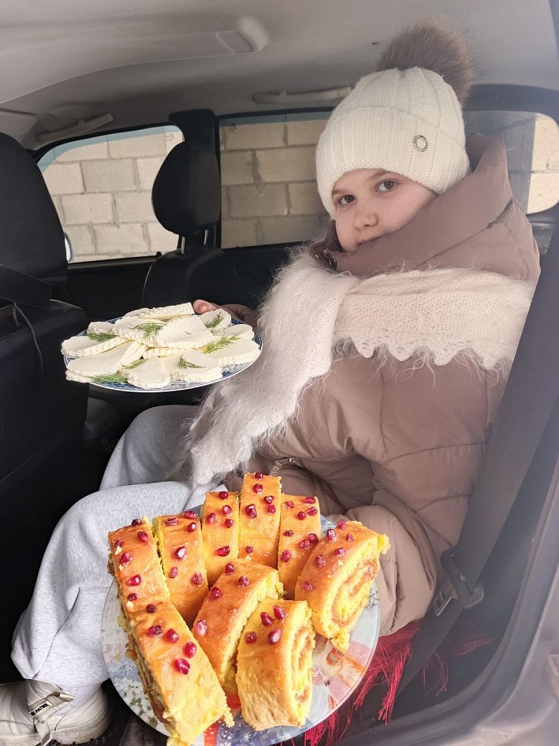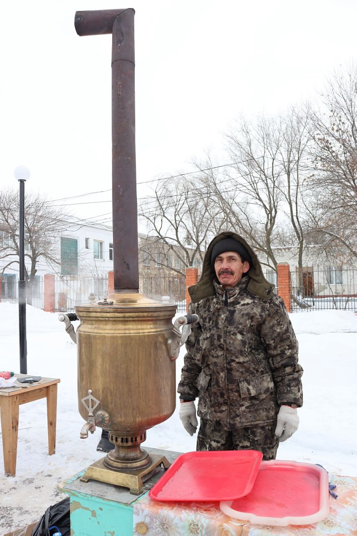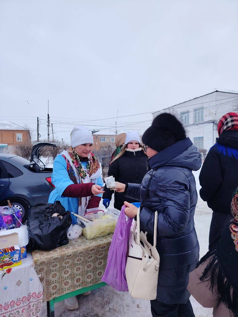 Поэтому жители района, кроме всевозможных развлечений и поедания блинов, подготовили различные благотворительные акции в помощь ребятам, находящимся «за ленточкой». Так, волонтеры группы «За наших Краснопартизанский район» (верхнее фото) организовали продажу угощений, которые они сами же и подготовили, а вырученные средства направили на очередную заявку. Блины, бутерброды, сладости, всевозможные соленья и варенья, ароматный шашлык выставлялись за символическую сумму.