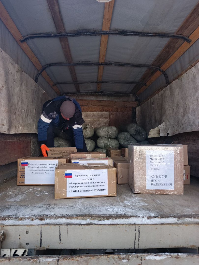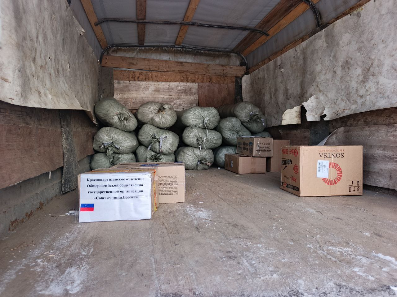 145 антитепловизионных одеял, 41 маскировочная сеть, подготовленная заботливыми руками краснопартизанских паучков и много-много всяких нужностей и товаров первой необходимости отправлено участницами местного женского движения совместно с волонтерами группы «Краснопартизанская семья».