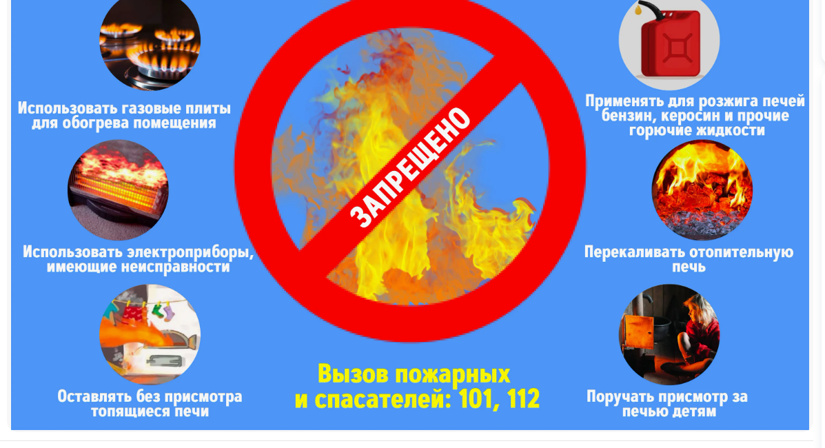 -перед началом отопительного сезона обеспечьте все требования пожарной безопасности при эксплуатации отопительных и банных печей, а именно проверить печи и дымоходы на наличие трещин, при необходимости устранить неисправности и побелить дымоходы.