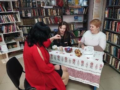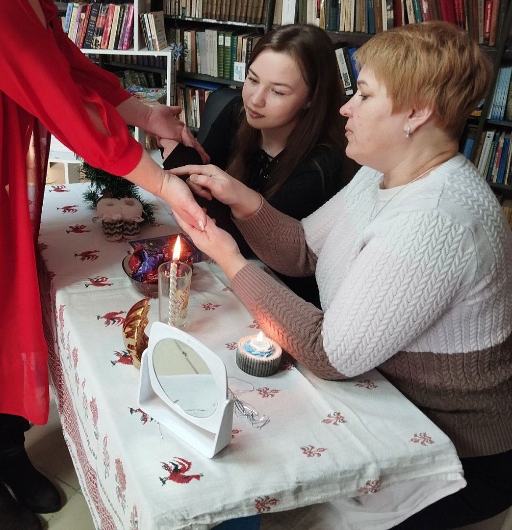Библиотекарь Беленской сельской библиотеки и гости праздника поиграли в шуточные гадания, знакомясь с обычаями и традиционными особенностями праздника.