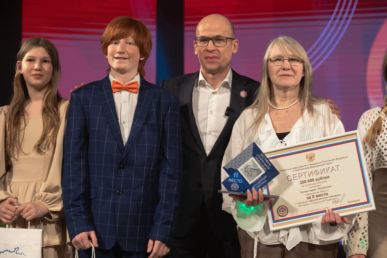 24 апреля 2026 года в Ижевске в Государственном национальном театре Удмуртской Республики состоялась торжественная церемония награждения победителей VII окружного Фестиваля детских и молодежных театральных коллективов «Театральное Приволжье». В мероприятии принял участие заместитель полномочного представителя Президента России в ПФО Олег Машковцев.