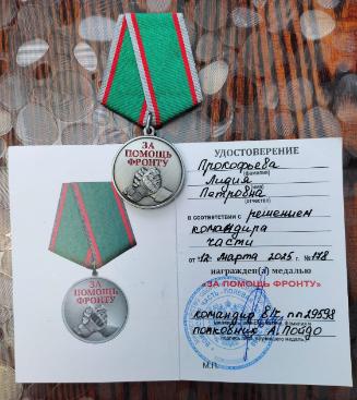 При получении награды Л.Прокофьева отметила: "У многих из тех, кто стал членом команды, сейчас на фронте мужья, братья, внуки. Это малое, что мы можем сделать для них здесь. Поэтому, при изготовлении изделий, домашней выпечки мы вкладываем и частицу души, которая будет оберегать наших бойцов и, конечно, уверены в скорейшей победе".