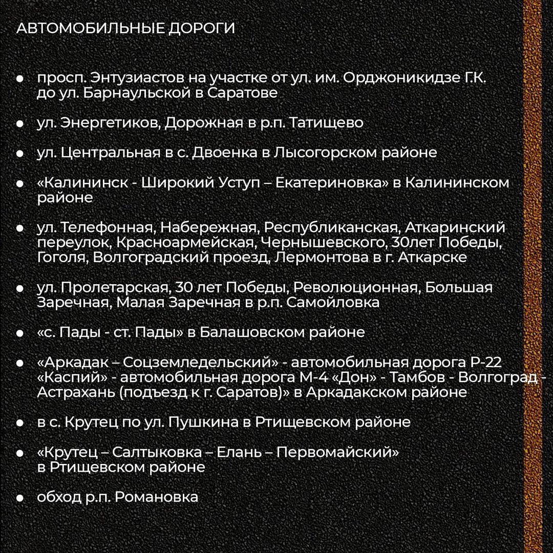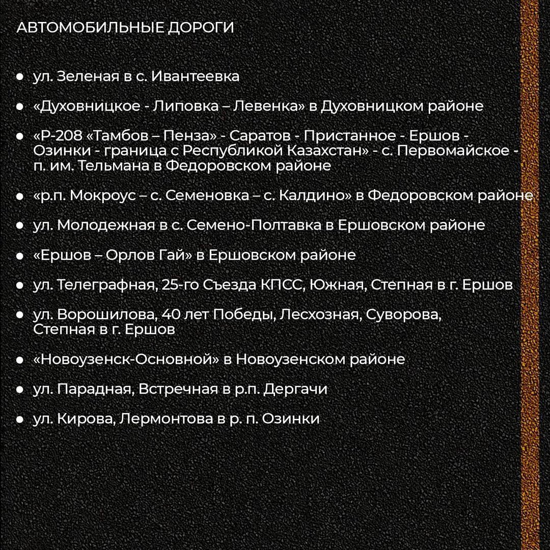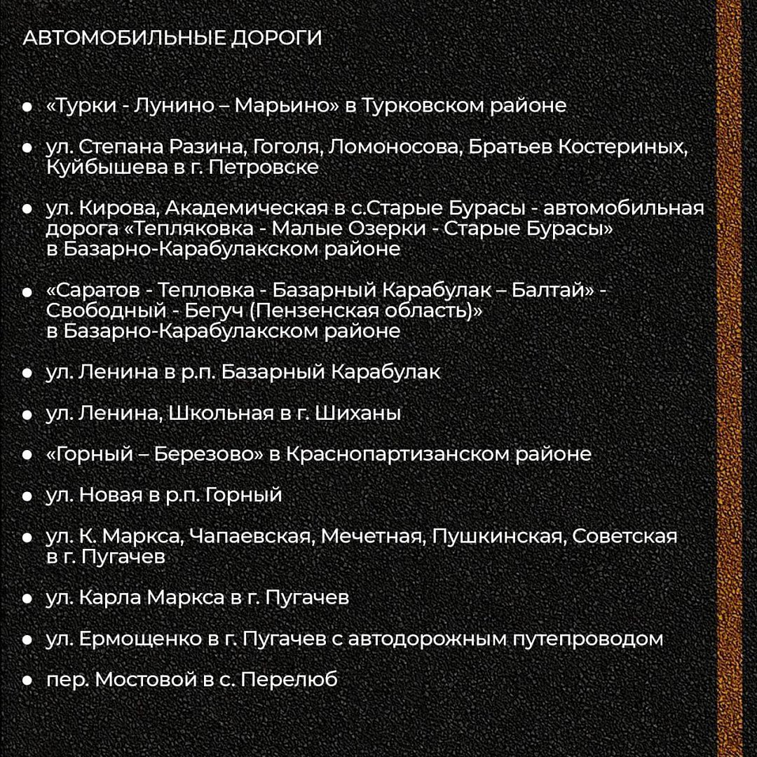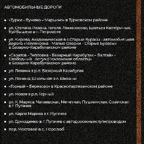 Работы будут проведены на 45 участках в Саратове и в районах области.