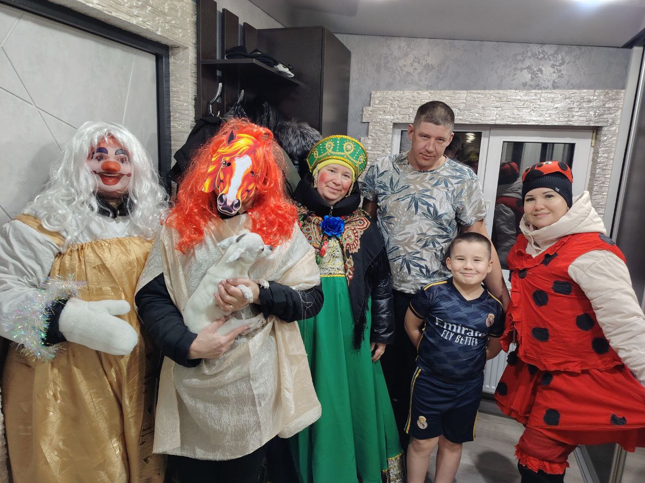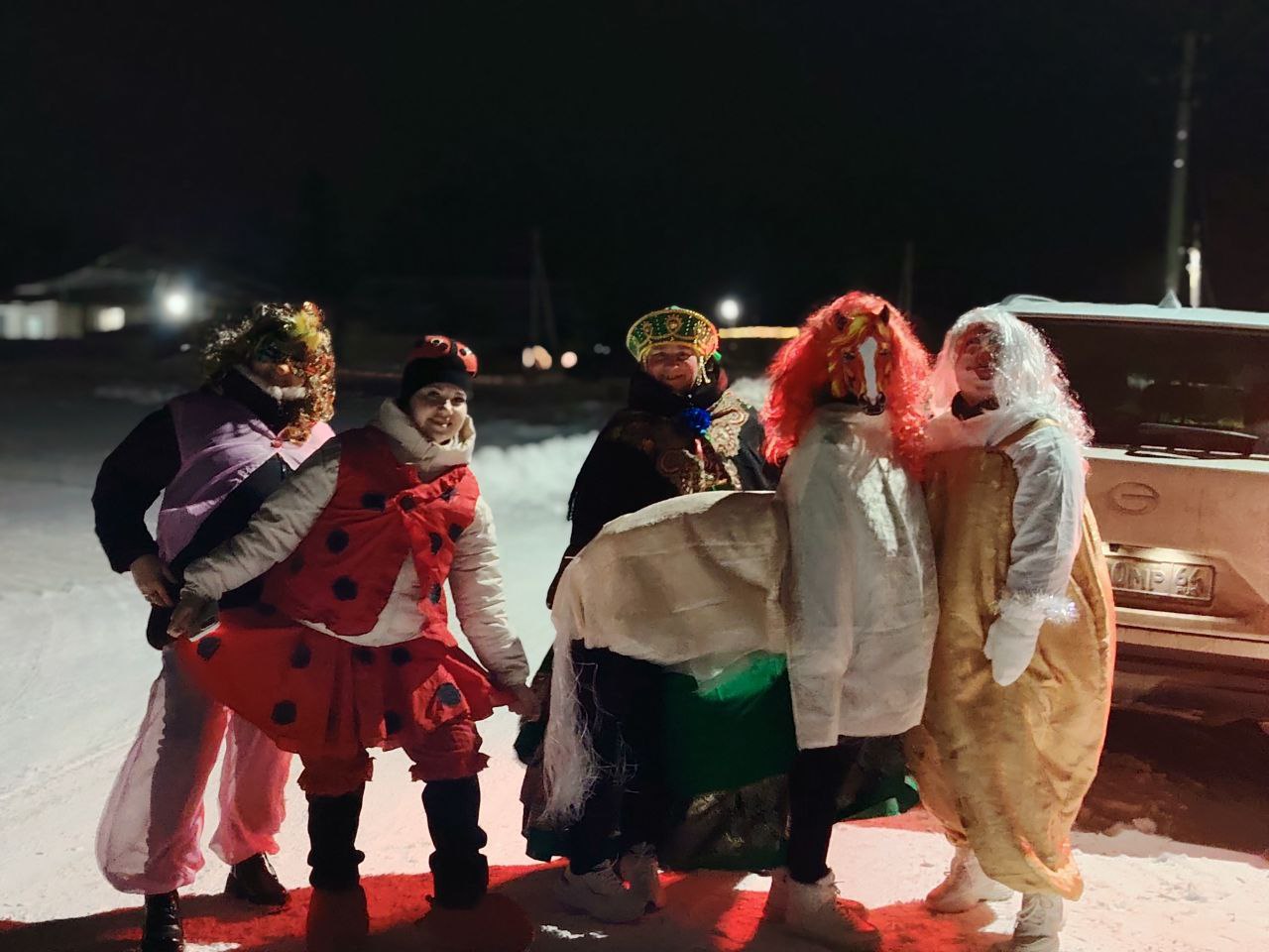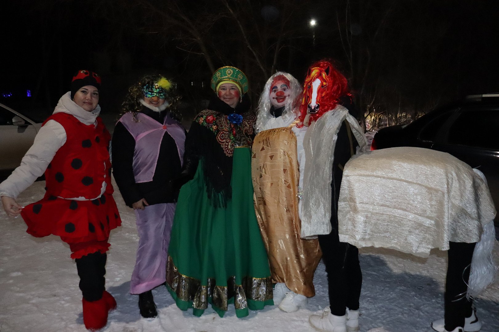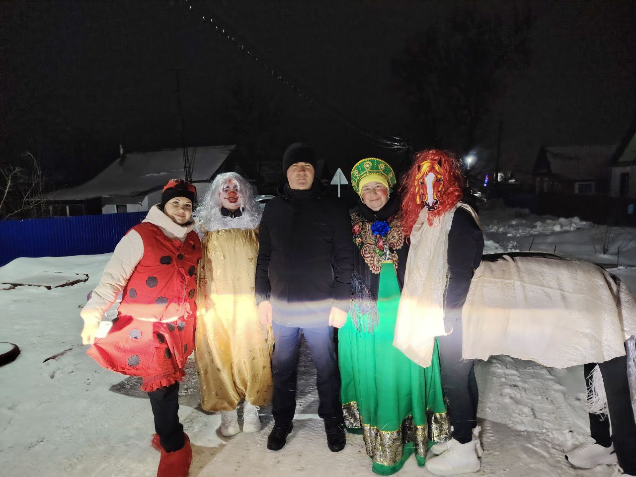 Нарядившись в костюмы, которые подготовили они сами, причем главной героиней дружной кампании была веселая Лошадка – символ наступившего года, волонтёры выучили самые забавные колядки. Конфетки, печенки и фрукты дружная кампания раздала детишкам, а вот денежки, собранные за этот вечер, направлены на покупку очень важного для наших военнослужащих генератора.